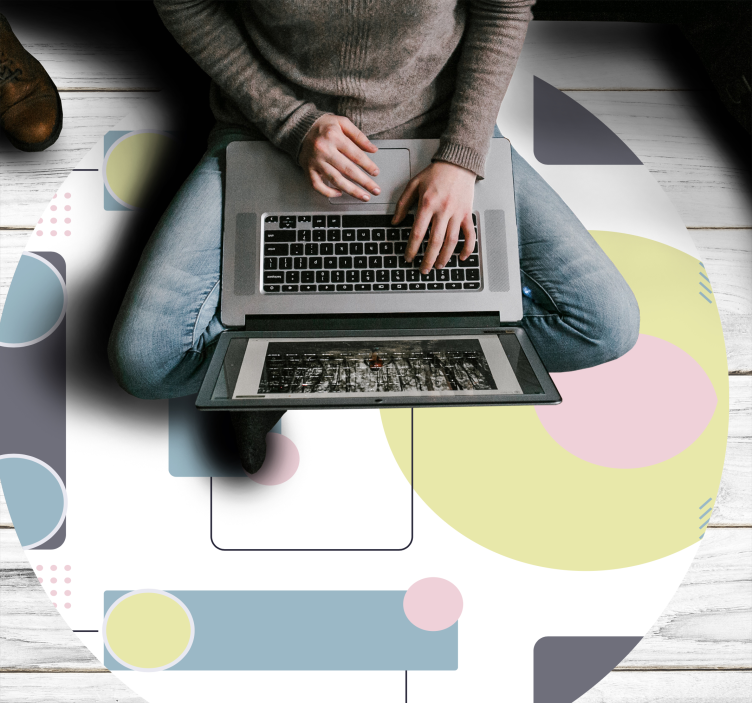 Descoperiți frumusețea modernă a Covorului de vinil geometric cu forme circulare abstracte, un produs ce îmbină designul abstract, cercurile colorate în nuanțe de albastru, roz și galben pentru a transforma orice încăpere într-un spațiu plin de viață și creativitate. Acest covor de vinil geometric nu doar că aduce un plus estetic, dar și un sentiment de modernitate și eleganță.