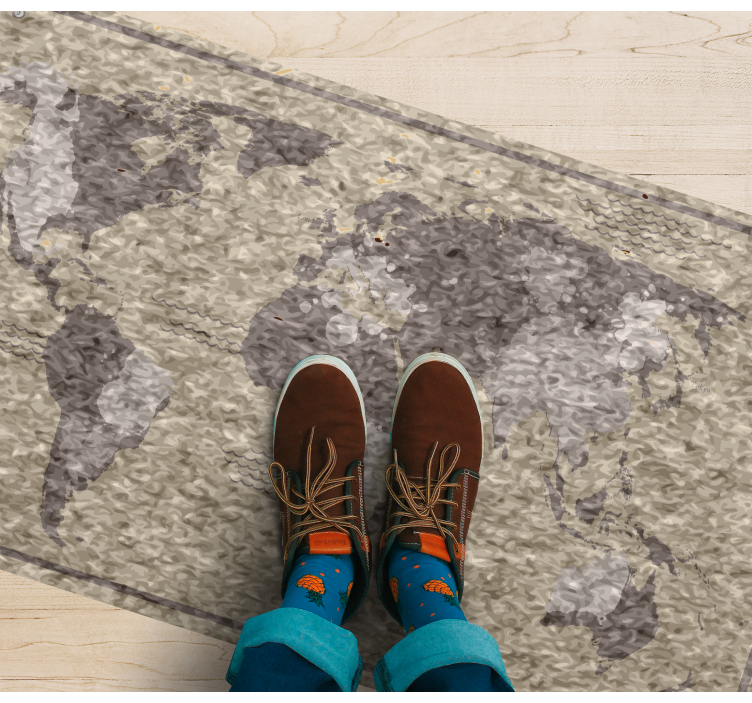 Descoperiți eleganța și rafinamentul unui covor de vinil harta lumii cu o ilustrație harta globală ce îmbină perfect o lume de culori neutre și texturi georgrafice. Acest design grafic captivant transformă orice spațiu într-un loc plin de inspirație și aventură.