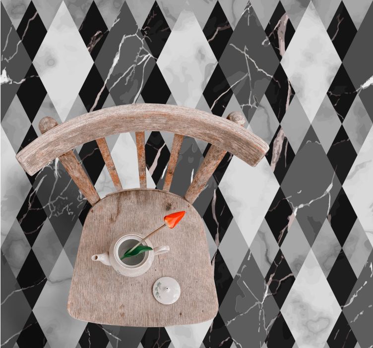 Referință: R18064O aranjare impresionantă de modele în formă de diamant în nuanțe variate de negru, gri și alb, evidențiind un efect de marmură. Designul include forme geometrice contrastante cu vene fine care se strecoară prin ele, creând un aspect sofisticat.