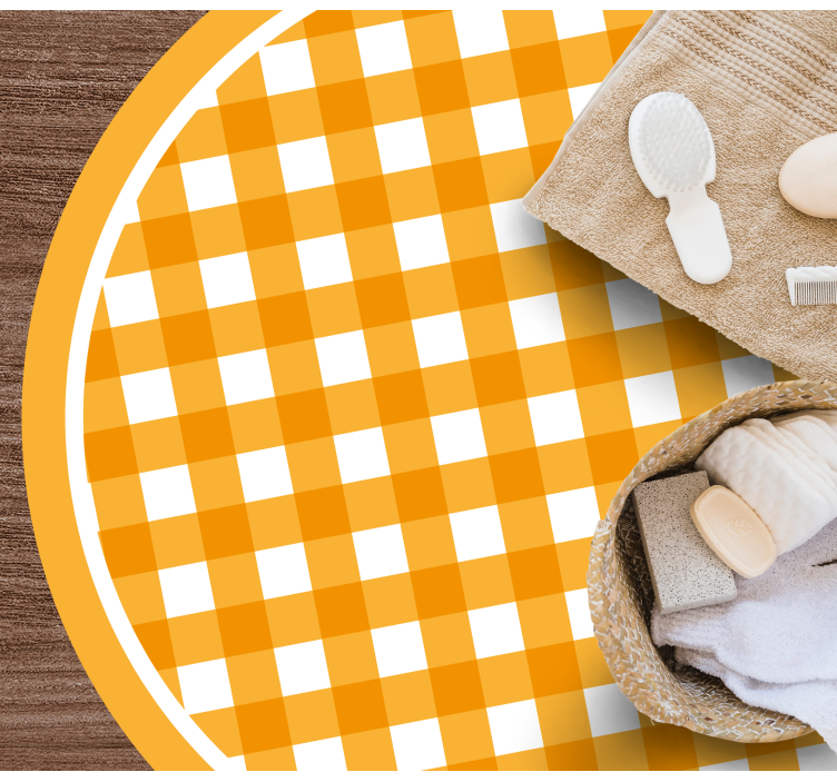 Referință: R19703Un model checkered vibrant și cald prezintă pătrate alternative de portocaliu și alb, creând un efect jucăuș, dar reconfortant. Designul este circular, încadrat cu o margine solidă de portocaliu, contribuind la o imagine veselă care iese în evidență.