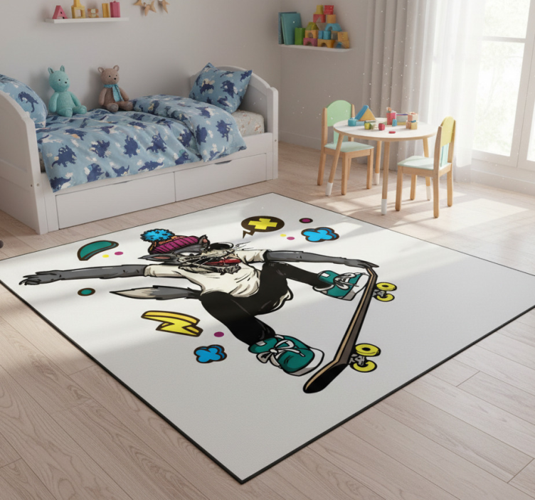 Covor vinil animal lup pe skateboard este alegerea perfectă pentru a adăuga un strop de originalitate și personalitate în orice spațiu. Datorită designului său captivant, acest covor nu doar că îmbunătățește estetic decorul, dar creează și o atmosferă plină de viață și energie. Imaginați-vă cum fiecare vizitator va fi impresionat de stilul unic și de combinația de forme și culori care transformă o simplă cameră într-un loc de poveste!