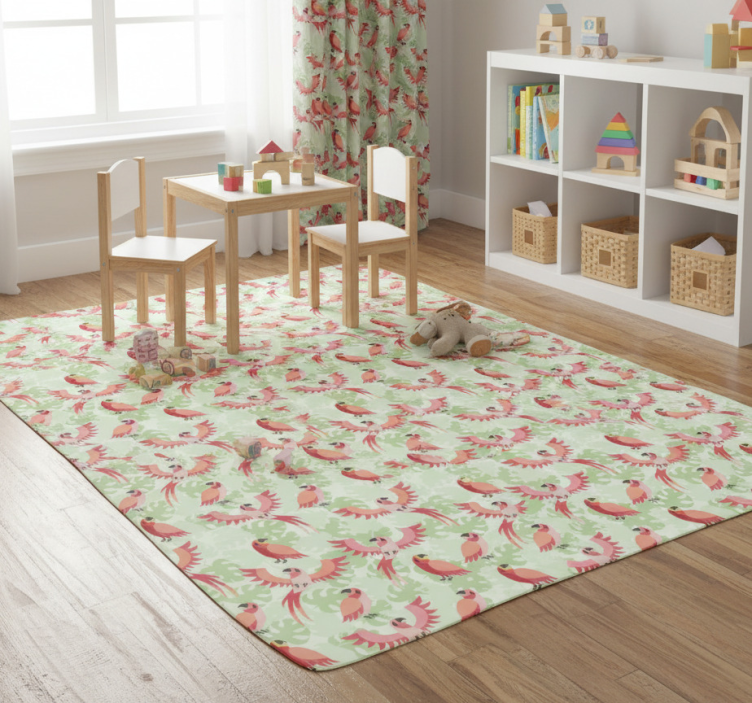 Covor vinil animal păsări roșii pe frunze verzi