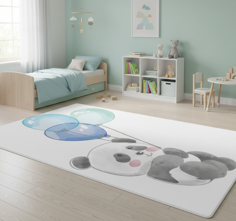 Covor vinil animal cu bebeluș care ține trei baloane