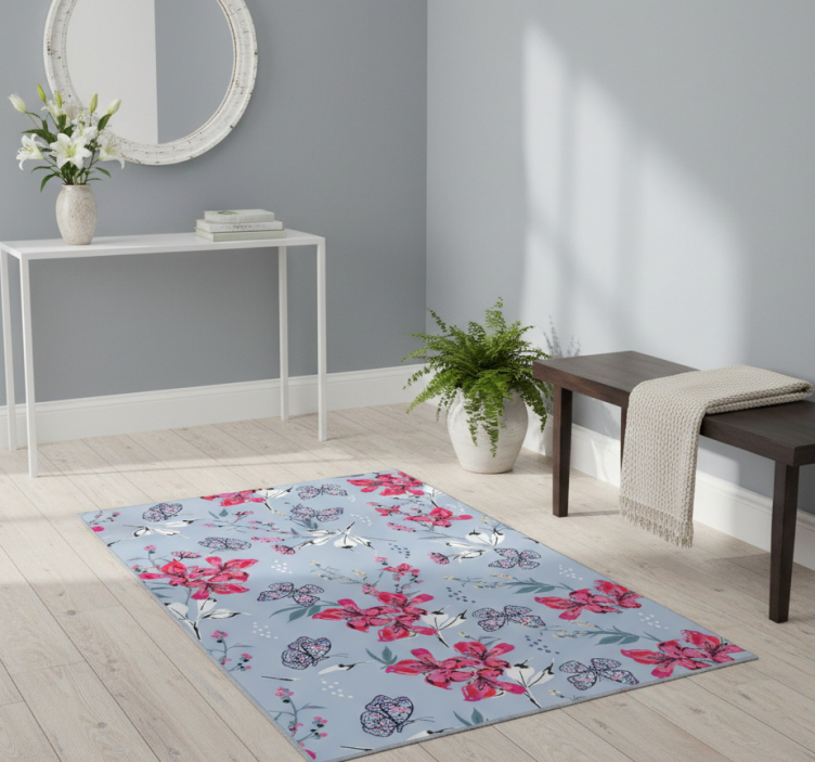 Covor vinil cu aspect de natura model flori si fluturi