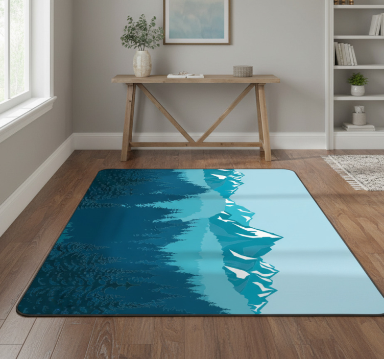 Covor vinil cu aspect de natura peisaj albastru-verde
