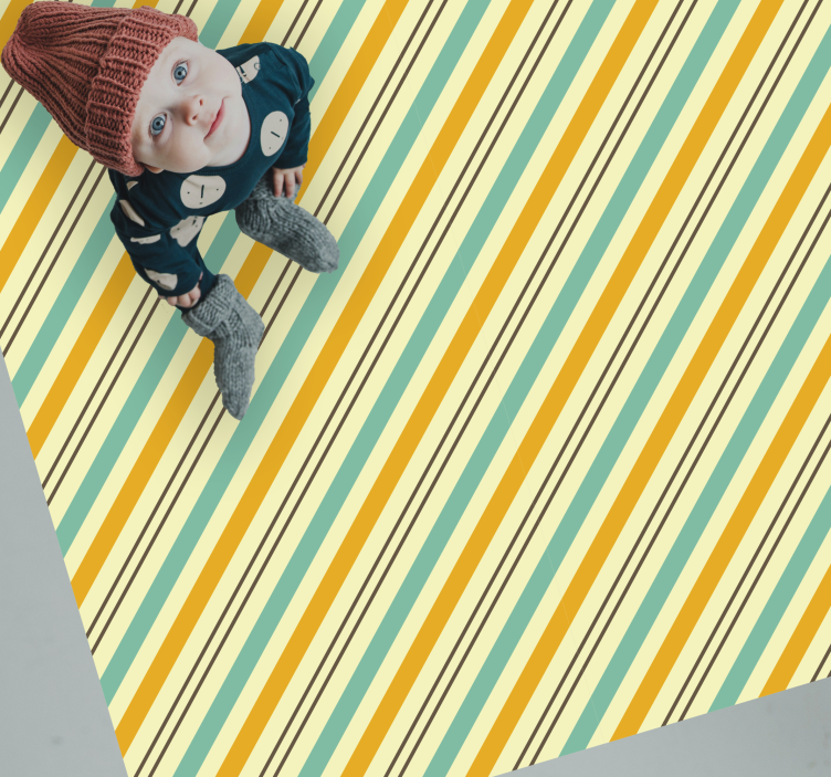 Descoperiți un covor vinil vărgat concept viu cu dungi ce aduce un strop de energie și culoare în orice încăpere! Designul său grafic jucăuș, cu dungi diagonale în nuanțe vibrante de galben și albastru, transformă orice spațiu într-un loc plin de viață și creativitate.