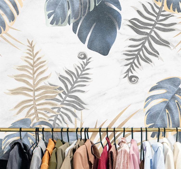 Referință: F12220Un design elegant care prezintă diverse frunze și vegetație într-o combinație de culori. Aranjamentul complex surprinde esența naturii, evidențiind o combinație de frunze tropicale și de ferigă, creând o atmosferă revigorantă și serenă.