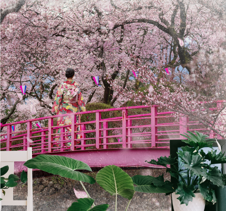 Descoperiți un univers de frumusețe cu Fototapet cu flori scena florilor de cireș, un design grafic ce surprinde esența florilor de cireș, un pod fermecător, copaci verzi, și un stil japonez ce îmbină tradiția cu eleganța, totul în nuanțe de roz ce aduc un strop de primăvară în orice spațiu.