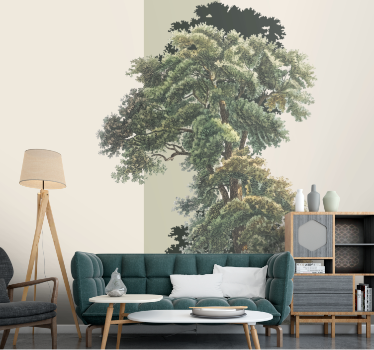 Designul grafic al acestui fototapet este o adevărată operă de artă, îmbinând ilustrarea unui peisaj vibrant cu elemente de natură, cum ar fi copaci și frunziș, pentru a aduce un suflu proaspăt în orice încăpere.