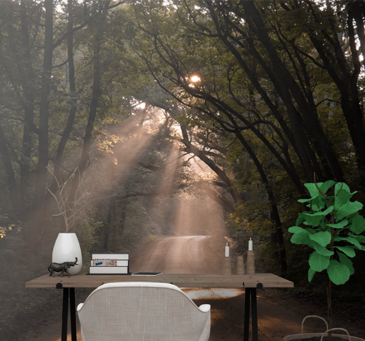Transformați-vă spațiul cu Fototapet natura poteca strălucitoare din pădure, un design grafic captivant care reînvie frumusețea naturală a unei păduri cu un drum luminat de razele soarelui, înconjurat de copaci viguroși și o cale care invită la explorare. Această operă de artă murală aduce natura mai aproape de dvs., creând o atmosferă calmantă și reconfortantă în orice cameră.