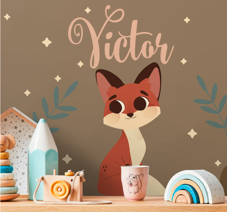 Descoperiți magia unui decor deosebit cu fototapet personalizabil cu personaj vulpe drăguță! Acest design grafic îmbină ilustrarea jucăușă a unei vulpi adorabile cu posibilitatea de a include un nume personalizat, aducând un plus de originalitate și personalitate în camera copiilor. Cu un stil de desen animat vibrant și atractiv, acest fototapet personalizabil transformă orice spațiu într-un loc de poveste!