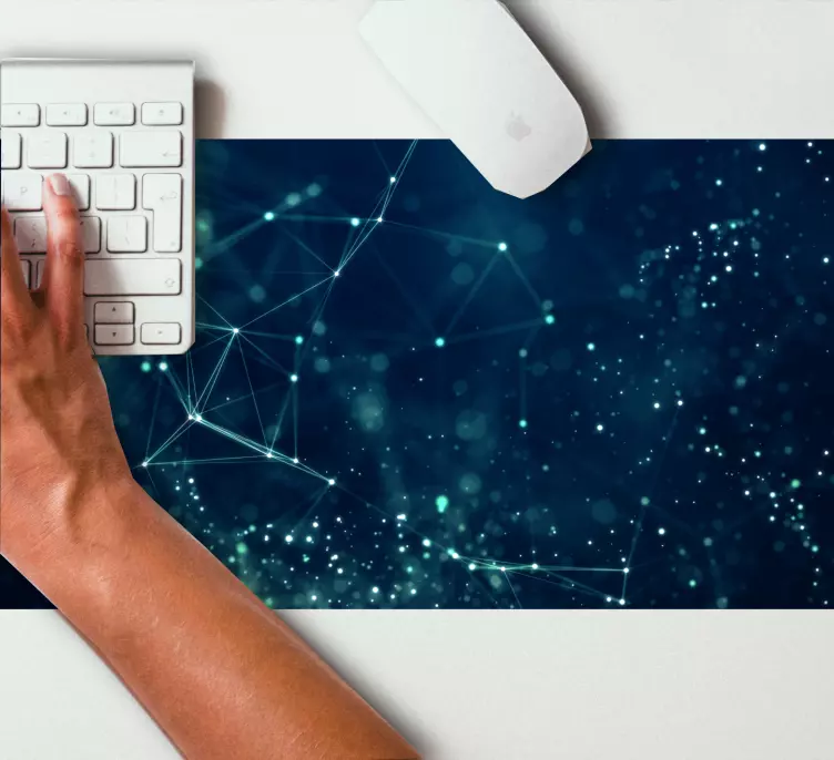 Descoperiți mouse pad-ul nostru de modele și texturi inspirate de tehnologie, un produs cu un design grafic captivant ce îmbină molecule, abstract, chimie, știință, albastru, futurist, ilustrare, tehnologie, linie de artă, rețea și elemente strălucitoare pentru a transforma orice spațiu de lucru într-un mediu inspirațional și inovator!