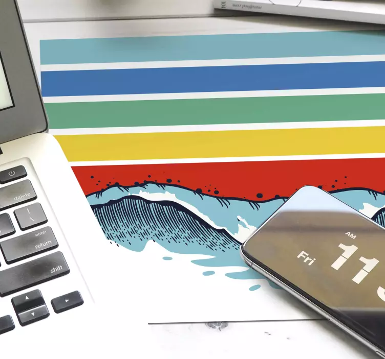 Descoperiți magia designului grafic cu acest Mouse pad de modele și texturi valuri și dungi care îmbină elemente precum valuri, dungi, ocean, desen, desenat de mână, ilustrare, valuri, colorat, abstract și fluid, oferind o experiență vizuală captivantă ce va transforma orice birou într-un spațiu creativ și inspirator!