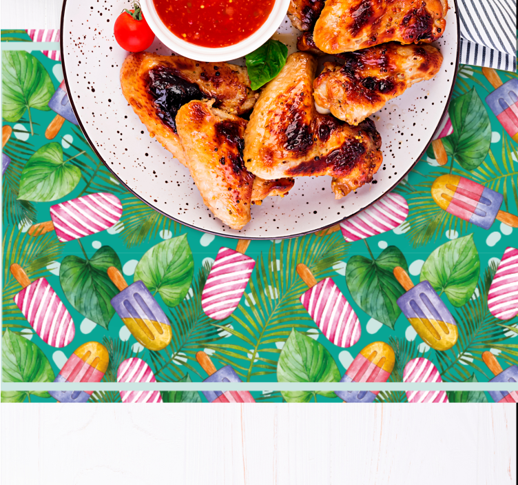 Întâlniți magia verii cu Naproane original Înghețată colorată, un produs cu un design grafic vibrant ce evocă atmosfera tropicală, cu frunze și acadele de gheață, palme pictate manual care aduc vibrații de distracție și răcorire pe orice masă. Această ilustrare captivantă transformă orice spațiu într-un colț de paradis estival!
