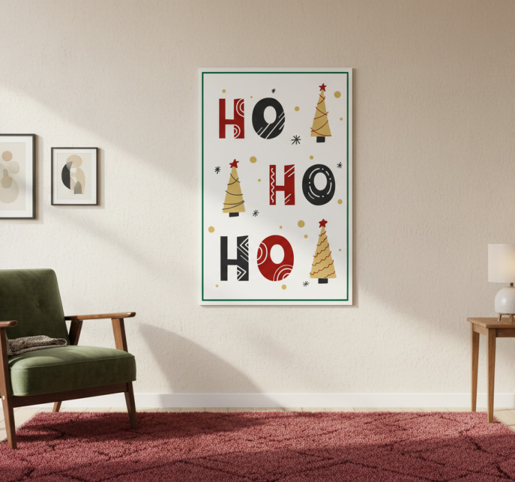 Posterul Crăciun cu poster crăciun design text ho ho ho este o alegere perfectă pentru a transforma atmosfera casei tale în una festivă. Fie că alegi să-l expui în living, în dormitor sau în birou, acest poster va aduce un zâmbet pe chipul tuturor și va crea amintiri frumoase în vremea sărbătorilor. Designul său jucăuș și mesajul său vesel sunt ideale pentru a încuraja un spirit de bucurie și convivialitate în fiecare colț al casei tale!