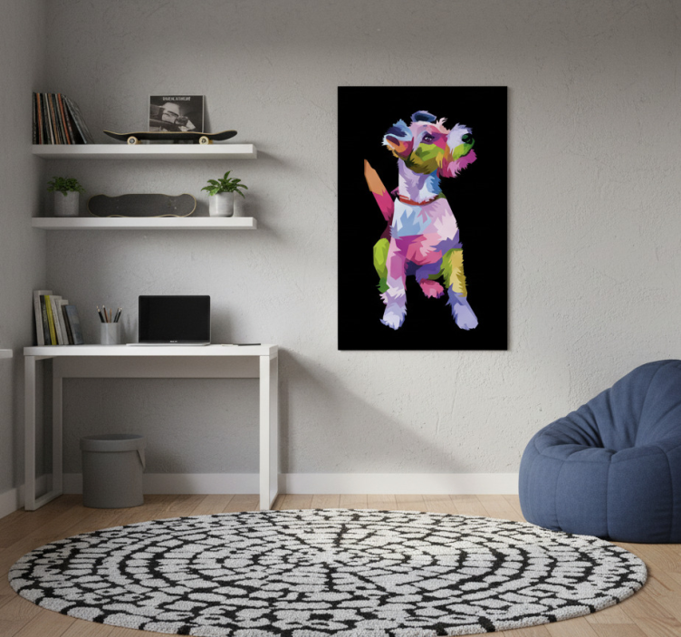 Poster pentru salon vulpe terrier geometrică este alegerea perfectă pentru cei care doresc să transforme un spațiu comun în unul plin de personalitate. Cu un design captivant și culori ce atrag atenția, acest poster aduce o notă de veselie și stil, devenind punctul de atracție al oricărei încăperi. Alege să îți exprimi creativitatea și să învii atmosfera salonului tău cu această piesă de artă unică!