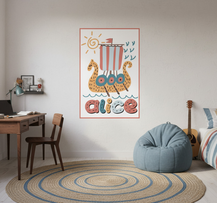 Posterul tineret poster tineret cu navă viking personalizată transformă orice spațiu într-un loc de poveste, aducând un strop de aventură și fantezie. Este perfect pentru camerele tinerilor care apreciază cultura vikingilor și doresc să-și exprime personalitatea prin decoruri unice. Oferind o atmosferă dinamică și creativă, acest poster devine rapid un element central al decorului, inspirând discuții și admirație.
