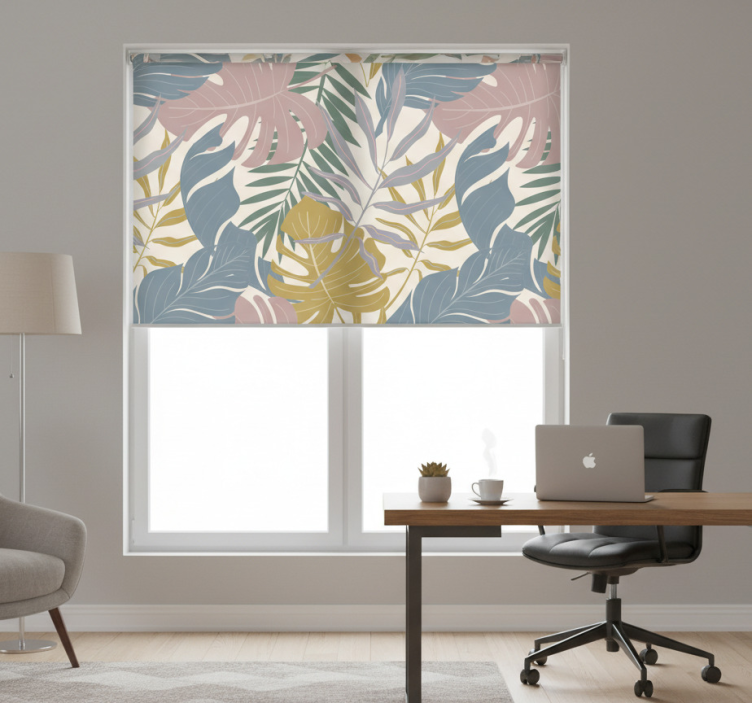 Referință: E6185Descoperiți frumusețea și versatilitatea Rulou geam birou detalii vegetație tropicală, o alegere perfectă pentru biroul dumneavoastră! Designul său grafic captivant, inspirat de natură, aduce un strop de exotism în orice spațiu de lucru, cu nuanțe vibrante și motive tropicale ce se îmbină armonios, creând o atmosferă plăcută și relaxantă.