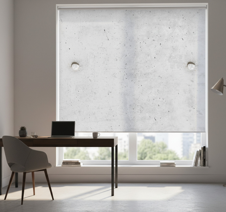 Referință: E7366Designul grafic al Rulou geam birou efect beton este modern și estetic, având un aspect elegant care se integrează perfect în orice birou sau spațiu de lucru, oferind o notă de sofisticare prin textura sa inspirată de beton și nuanțele neutre care se potrivesc cu diverse stiluri de amenajare.