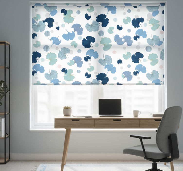Referință: E7298Designul grafic al ruloului geam birou frunză de ginkgo albastră îmbină eleganța cu funcționalitatea, având un aspect modern și rafinat care aduce un strop de natură în orice spațiu. Culorile vibrante și modelul inspirat din frunza de ginkgo creează o atmosferă calmă și primitoare, transformând biroul într-un loc plăcut și creativ.