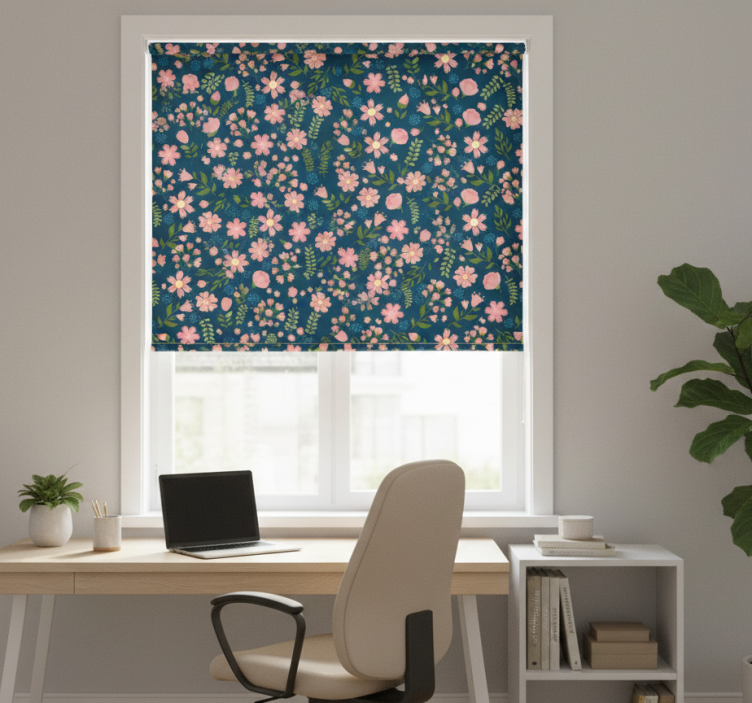 Rulou geam birou imprimeu flori 'floflo' albastru