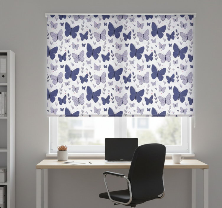 Rulou geam birou model fluturi roz și albastru