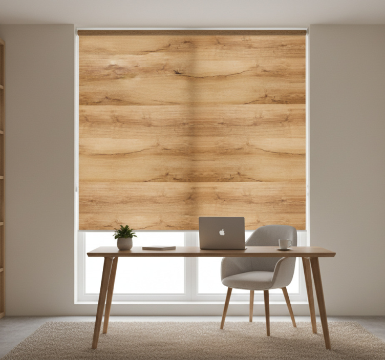 Rulou geam birou plăci de lemn bej rustic elegant