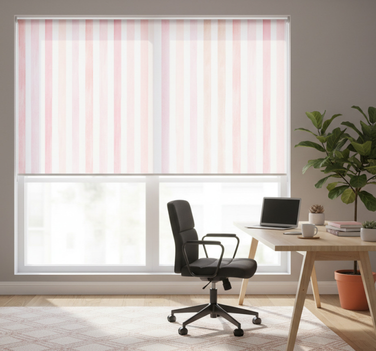 Referință: E7390Ruloul de geam pentru birou cu dungi roz acvarelă aduce un suflu proaspăt de culoare și eleganță în orice spațiu de lucru. Designul său grafic captivant, cu dungi delicate și nuanțe pastelate, transformă instantaneu atmosfera biroului, făcându-l mai primitor și plin de energie creativă.