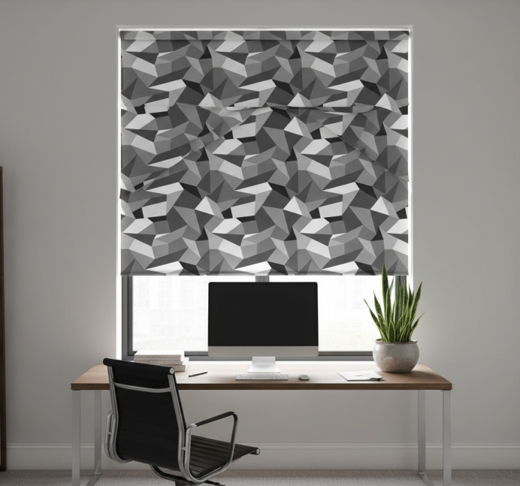 Referință: E7371Ruloul geam birou triunghiuri alb-negru reprezintă o alegere elegantă și modernă, având un design grafic captivant ce îmbină formele geometrice în alb și negru, aducând un plus de stil oricărei încăperi. Acest produs nu doar că îmbunătățește estetica, dar oferă și funcționalitate, având un aspect sofisticat care se potrivește perfect în birouri sau spații de lucru.