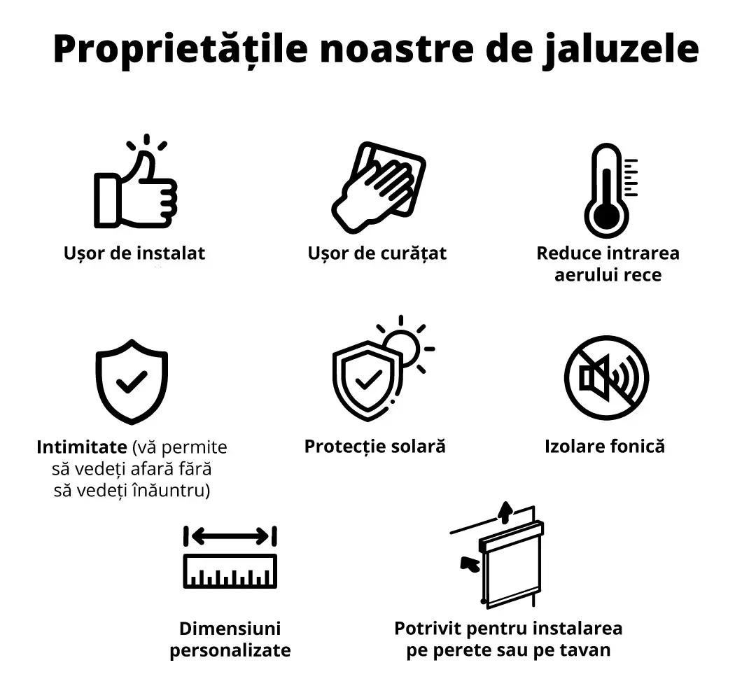 Roletele personalizate sunt o alternativă modernă și ieftină pentru a decora orice fereastră. Instalarea și asamblarea jaluzelelor Tensticker este foarte ușoară, o puteți face singură fără a investi prea mult efort și timp. Vă rugăm să rețineți că jaluzelele noastre sunt complet asamblate și necesită instalarea numai a suporturilor.