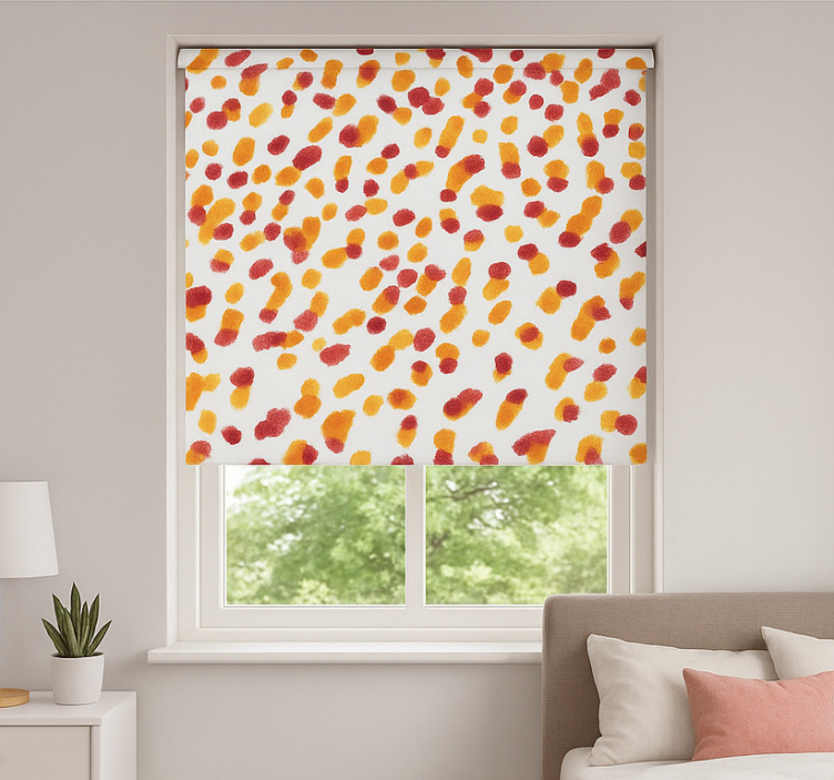 Referință: E5852Ruloul de geam pentru tineret în nuanțe vibrante de portocaliu și roșu aduce un suflu proaspăt și energic în orice cameră. Designul său grafic captivant, cu puncte portocalii și roșii, transformă spațiul, oferind un aspect modern și dinamic, perfect pentru a stimula creativitatea și buna dispoziție.
