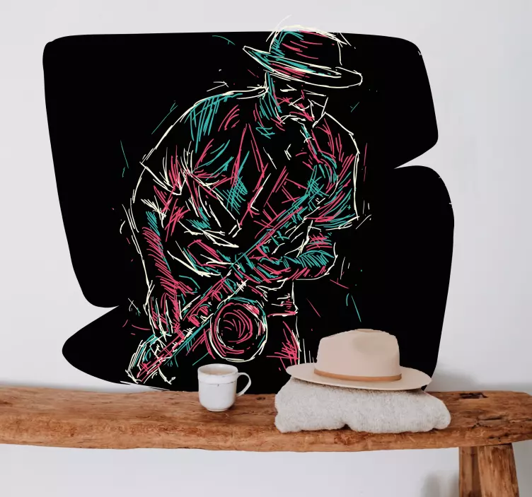 Referință: A32732Autocolant de perete abstract saxofon jazz