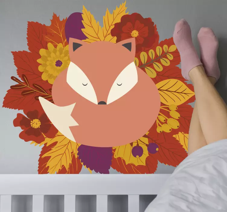 Descoperiți magia toamnei cu Autocolant animale vulpe cu frunze, un design grafic captivant care îmbină frumusețea naturii cu viața sălbatică. Această vulpe somnoroasă, înconjurată de flori și frunze de toamnă, aduce un strop de culoare și căldură în orice spațiu. Fie că este vorba de un dormitor, un birou sau un colț de relaxare, acest autocolant transformă instantaneu atmosfera, evocând esența naturii și a sezonului de toamnă.