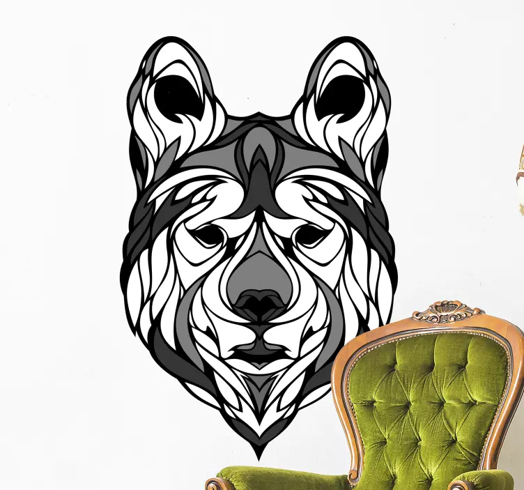 Designul grafic al acestui Autocolant cap de câine artistic este o adevărată operă de artă, îmbinând un portret abstract al unui lup cu un stil artistic alb-negru care transformă orice spațiu într-un loc deosebit. Această piesă decorativă este perfectă pentru cei care apreciază estetica animalelor și doresc să aducă un strop de originalitate în decorul lor.