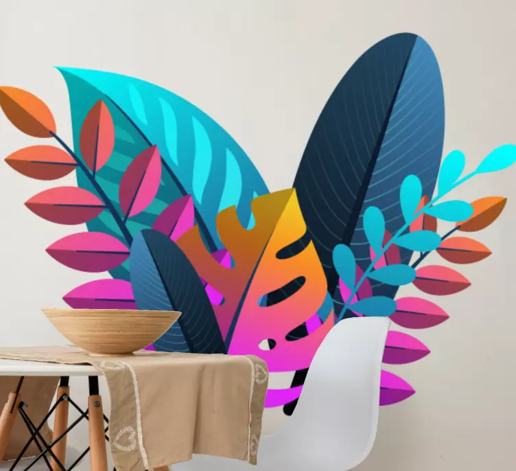 Descoperiți magia naturii cu Autocolant cu natură colecția frunzelor vibrante, un produs cu un design grafic colorat și botanic care aduce un strop de tropical în orice încăpere. Acest autocolant cu frunze vibrante transformă orice spațiu în unul plin de viață și energie, datorită frunzișului său decorativ care se integrează perfect în orice decor.