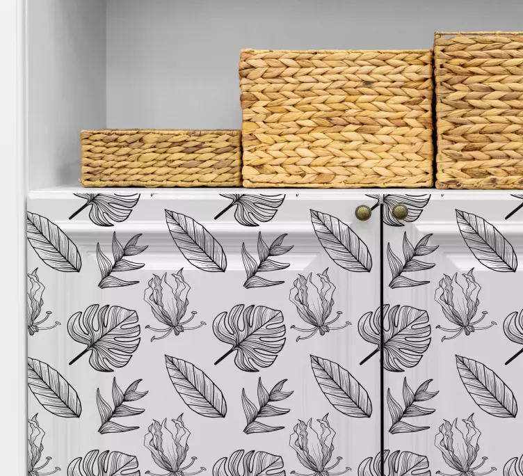 Descoperiți frumusețea naturii cu Autocolant cu plante modele cu frunze verzi! Designul grafic captivant îmbină frunze tropicale cu un model elegant alb-negru, aducând un strop de natură florală în fiecare colț al casei dumneavoastră. Acest autocolant este perfect pentru a transforma mobila obișnuită într-o piesă de artă, oferind un aspect fresh și vivace oricărei încăperi!