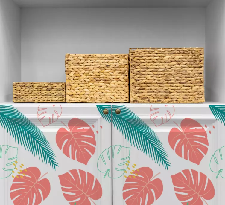 Designul grafic al acestui autocolant decorativ cu motive de frunze tropicale este un adevărat festin vizual, având un model vibrant ce încorporează frunze colorate și floră exotică, perfect pentru a transforma mobila într-o piesă centrală în orice încăpere. Această alegere decorativă va adăuga un aer proaspăt și energic oricărui spațiu, făcându-l să strălucească de vitalitate!