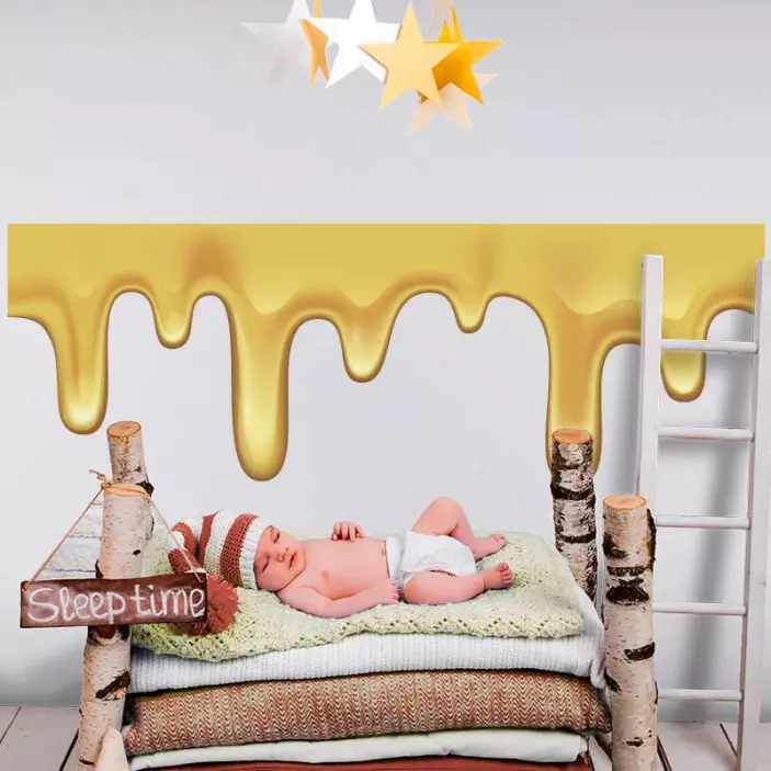 Descoperiți frumusețea unui autocolant decorativ design cu aur curgător, care aduce un strop de eleganță și rafinament în orice spațiu. Acest design grafic captivant are o textură netedă ce imită picurarea de aur și miere, transformând fiecare colț al casei dumneavoastră într-o operă de artă decorativă.