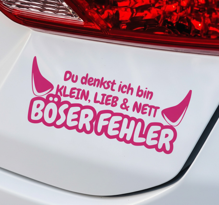 Cumpărând autocolantul pentru auto autocolant pentru auto diavolul roz greșit din magazinul nostru online, beneficiezi de un produs de calitate superioară, ușor de aplicat pe orice suprafață plană. Fie că este vorba despre mașina ta sau despre un alt obiect decorativ, acest autocolant îți va oferi un aspect fresh și atrăgător. În plus, produsele noastre sunt fabricate la comandă, astfel încât poți personaliza dimensiunile dorite!