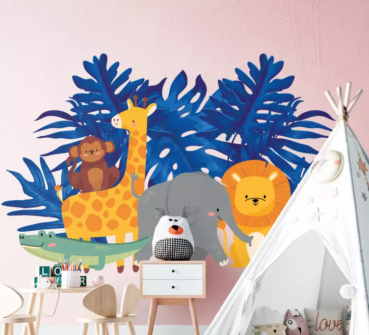 Referință: A48454O scenă vibrantă de junglă care prezintă o asortare jucăușă de animale, inclusiv un girafă, un leu, un elefant și o maimuță printre verdeața luxuriantă. Acest design încântător surprinde esența aventurii și prieteniei, făcându-l ideal pentru spațiile destinate copiilor, inspirând creativitate și imaginație.