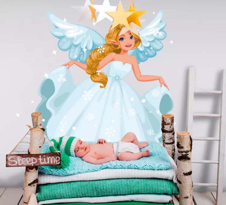 Descoperiți magia și fantezia cu Autocolantul pentru copii zână cu aripi, un design grafic captivant ce îmbină zânele, aripile delicate, fulgii de nea și visurile copiilor, aducând o notă de capriciu și frumusețe în orice cameră.