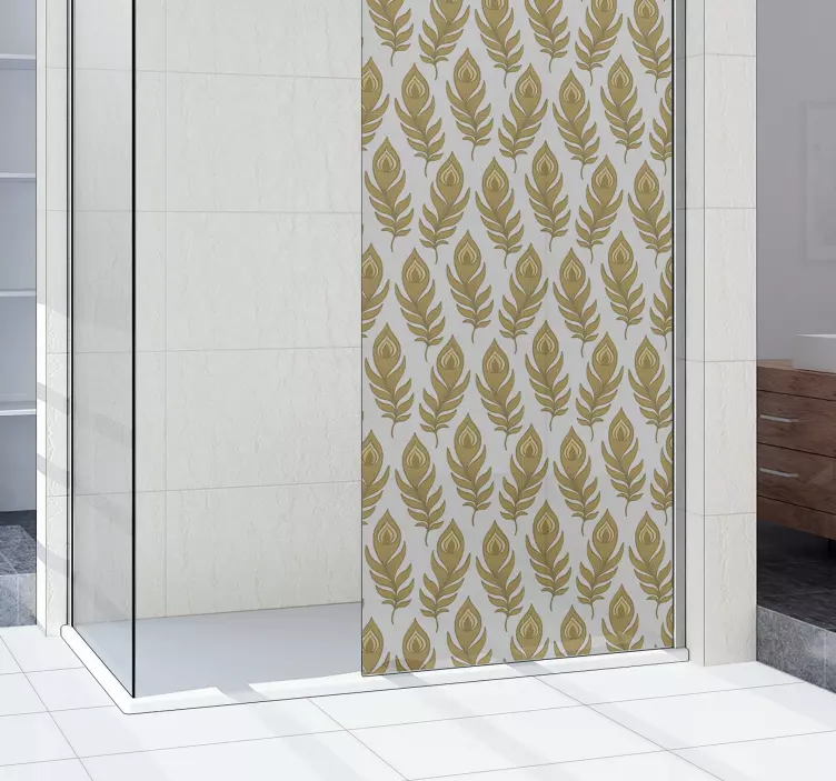 Designul grafic al autocolantului pentru duș element frunză elegantă aduce un strop de natură în baie printr-un model complicat, decorativ, ce îmbină delicatețea florilor și a frunzelor cu eleganța detaliilor aurii. Această creație artistică transformă paravanul de duș într-un colț de rai, oferind o atmosferă calmă și revitalizantă.