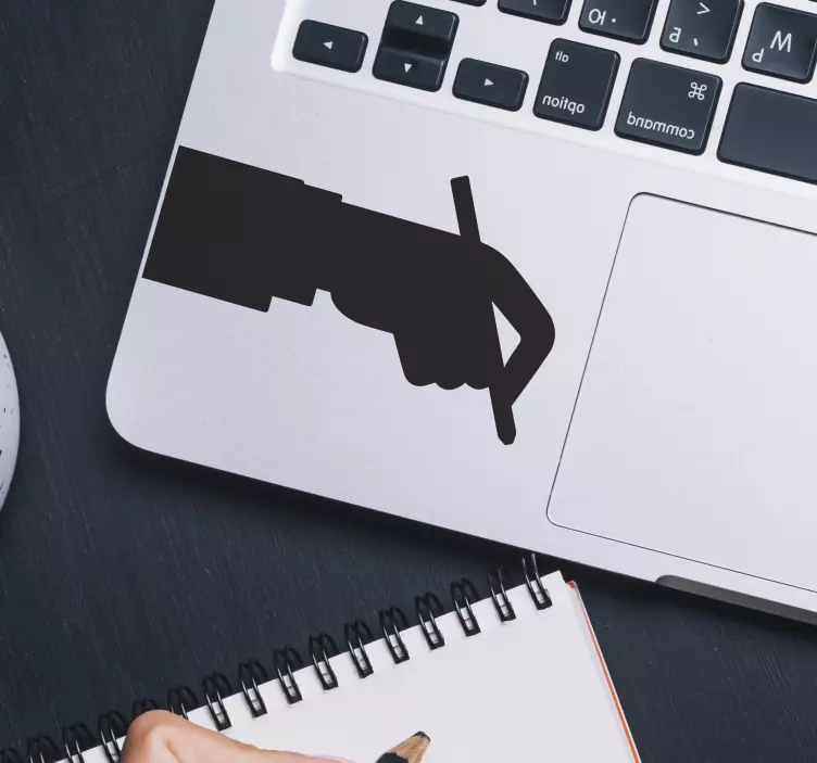 Descoperiți magia designului grafic cu acest autocolant pentru laptop cu mână care ține creion, o siluetă artistică și creativă care transformă orice laptop într-o operă de artă. Designul său elegant, cu o siluetă neagră, evocă inspirație și creativitate, fiind ideal pentru persoanele pasionate de scris și artă.
