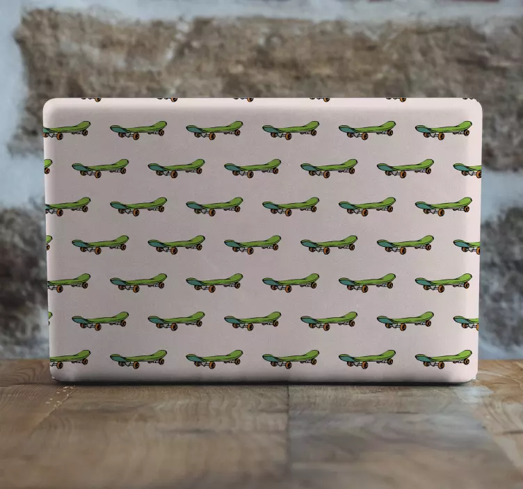 Bucură-te de un design grafic vibrant și jucăuș cu Autocolantul pentru laptop model skateboard, inspirat din cultura skateboard-ului, care îmbină elemente precum patinele și modele colorate, aducând un aer tineresc și distractiv laptopului tău.
