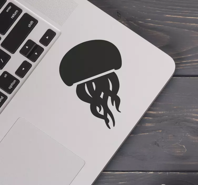 Descoperiți frumusețea adusă de designul grafic al Autocolantului pentru laptop siluetă elegantă de meduză. Această ilustrare minimalistă surprinde perfect silueta meduzei, evocând atmosfera marină și viața subacvatică. Cu un aspect simplu, dar atrăgător, acest produs transformă orice laptop într-un obiect de artă.