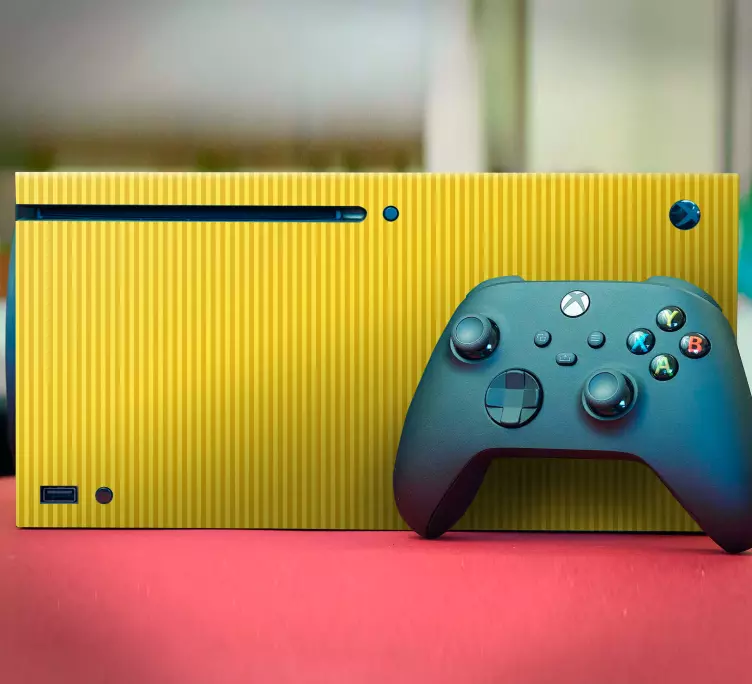 Descoperiți un autocolant pentru xbox mânușă de jocuri vibrantă ce transformă consola dumneavoastră într-o operă de artă. Designul grafic vibrant, cu nuanțe de galben și dungi atrăgătoare, adaugă un strop de energie și pasiune pentru jocuri video. Acest autocolant nu doar că îmbunătățește aspectul consolei, dar oferă și o experiență vizuală captivantă, perfectă pentru orice gamer!
