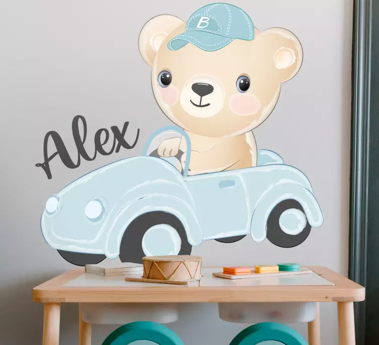 Referință: A48719Ilustrația fermecătoare prezintă un urs adorabil într-un vehicul vintage, purtând o pălărie. Designul evocă un sentiment de distracție și aventură, atrăgând imaginația copiilor. Opțiunile personalizate adaugă o notă specială, făcând aceasta o completare încântătoare pentru orice spațiu al unui copil.