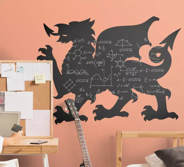 Referință: A51514Prezentând o siluetă de dragon majestuos împodobită cu simboluri și ecuații matematice, acest design impresionant îmbină fantezia cu academia. Creatura mitică stă ca un emblemă puternică, reprezentând forța și cunoașterea, în timp ce detaliile intricate adaugă un farmec unic oricărui spațiu.
