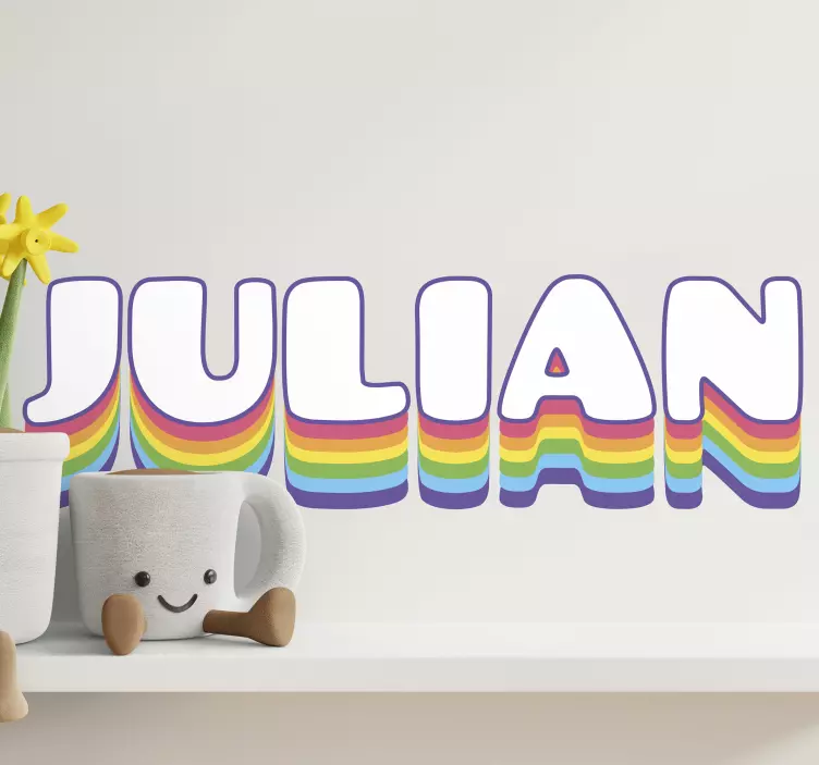 Descoperiți magia unui design grafic unic cu Autocolant text creare nume vibrant! Acest produs personalizat îmbină culorile curcubeului într-un mod jucăuș și vibrant, transformând orice spațiu într-un loc plin de viață și personalitate.
