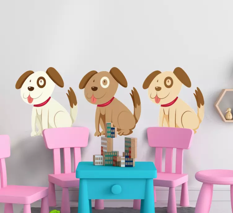 Autocolant trio de câini jucăuși